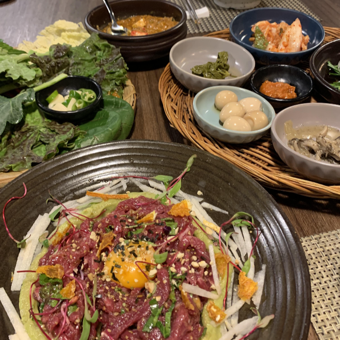 사진을 보면, 육회 옆에